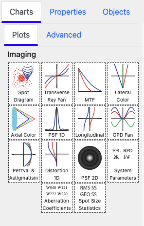 The pull-tab (![](https://2927895027-files.gitbook.io/~/files/v0/b/gitbook-x-prod.appspot.com/o/spaces%2FvzB1GHTV5xshI62EhkCW%2Fuploads%2FObJjSt8nnPFM0y6mCzFa%2Fimage.png?alt=media\&token=275ecb02-f2fa-4b4a-9333-f73a1721b146)) can be dragged up with the mouse to increase the size of plots. By default, the QuickDash plots are closed in the simulation, and this tab can be pulled to show them. Various quantities can be displayed in the QuickDash such as tables of statistics or spot diagrams or other plots. Additionally by mousing over the top left corner of each plot or table you can drag to rearrange the tables and plots.